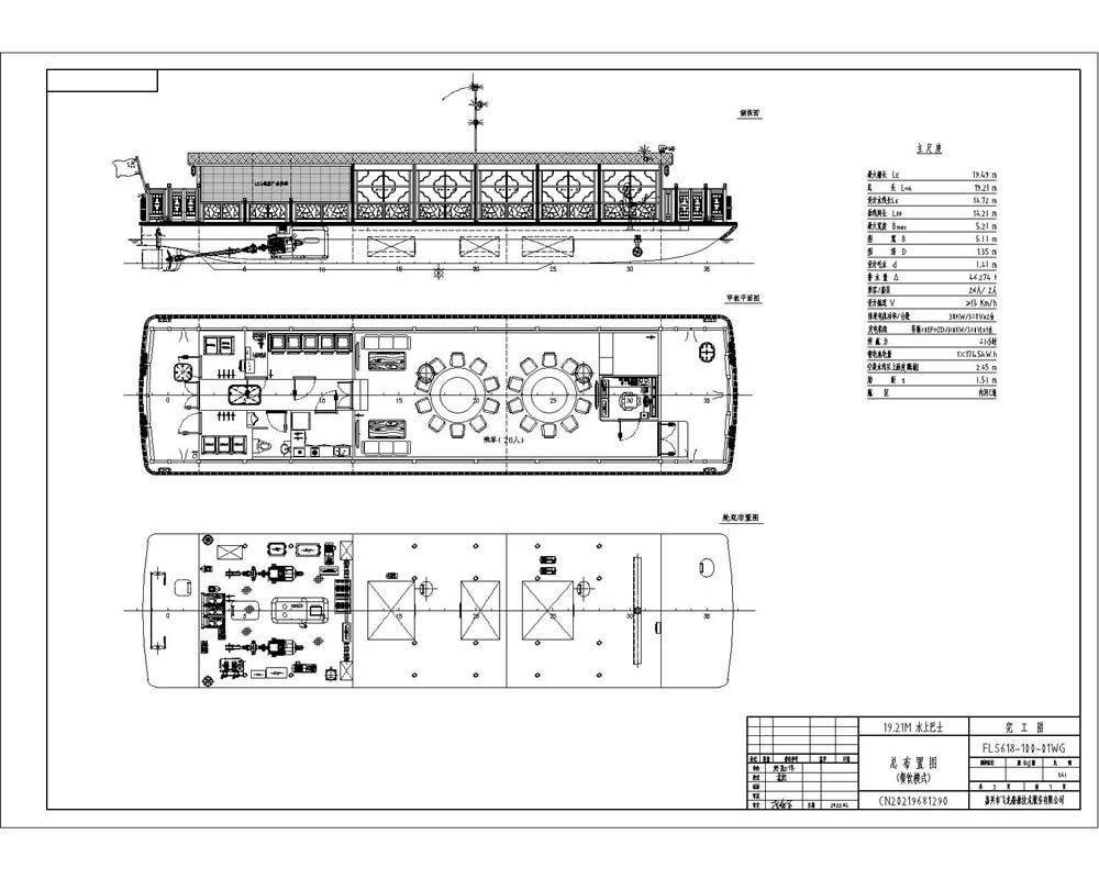 本船為鋼鋁結(jié)構(gòu)、單甲板、單底、單舷、尾機(jī)型、雙電機(jī)、雙槳、雙舵、混動(dòng)電力推進(jìn)的船舶,航行于浙江嘉興內(nèi)河水域,是集水上交通客運(yùn)、商務(wù)接待等為一體的綜合性客船,本船具備夜航功能。