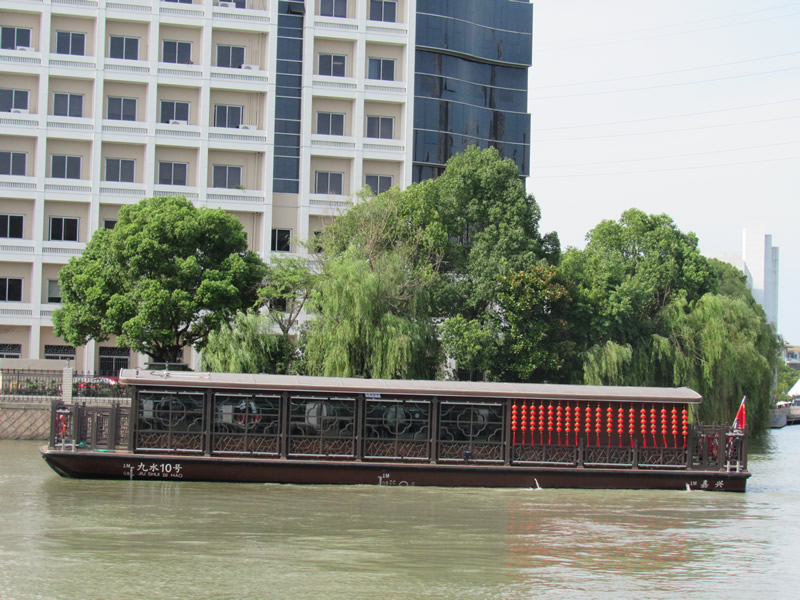 該船外觀及內(nèi)飾緊緊圍繞“紅船魂? 江南韻 ? 運(yùn)河情?國際范”的主題展開,整體采用仿古木藝的中式裝修風(fēng)格,充分彰顯嘉興江南水鄉(xiāng)、的文化魅力。