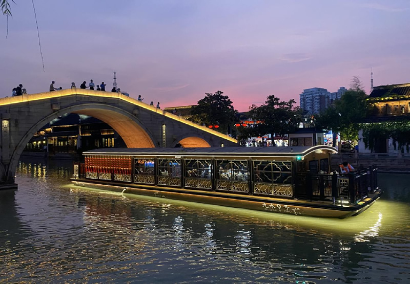 作為“一環(huán)游南湖,九水游嘉禾”項(xiàng)目的新能源船舶,九水9號(hào)、10號(hào)長度為19.21m,寓意著偉大的中國共產(chǎn)黨于1921年在嘉興南湖誕生。